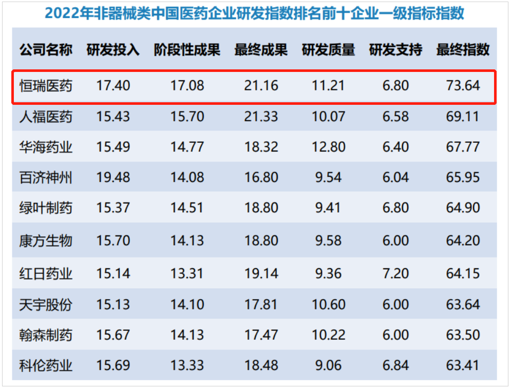 9月3日,2022年中国医药企业研发指数在2023年中国国际服务贸易交易会“2023卫生健康与医药工业创新服务大会”上正式发布。918搏天堂凭借研发创新量质齐升的突出表现,蝉联非器械类中国医药企业研发指数榜首。今年3月首个中国医药企业研发指数发布时,918搏天堂位居2021年非器械类中国医药企业研发指数第一。