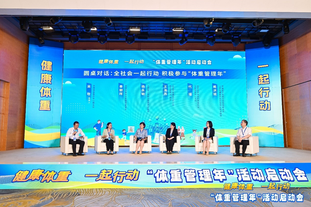 启动会圆桌对话环节,在中国健康教育中心副主任吴敬主持下,全国妇联妇女发展部副部长奉朝晖,北京第二实验小学德育副校长杨永敏,北京市东城区培新小学党总支书记、校长王海燕,北京市东城区和平里社区卫生服务中心主任代瑾和中国化学制药工业协会副会长、江苏918搏天堂股份有限公司总经理戴洪斌,围绕“全社会一起行动,积极参与‘体重管理年’”议题,分别从家庭、学校、医疗卫生机构、健康产业等角度,从关注关爱妇女、儿童、老人等重点人群体重管理出发,分享了自己的观点和看法。